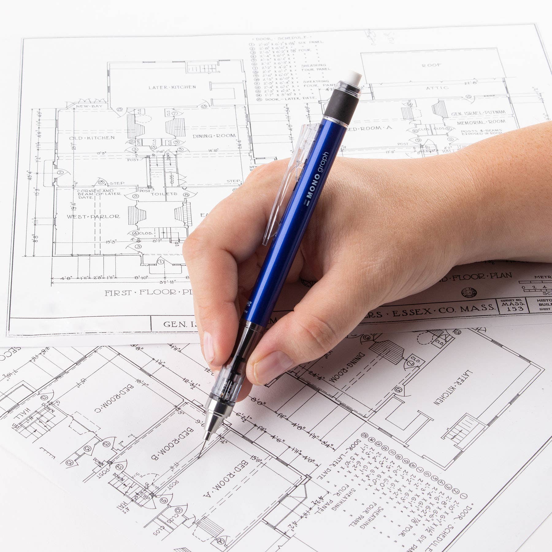 The MONO Graph Mechanical Pencil is Tombow’s #1 selling mechanical pencil. It features an innovative shake-mechanism that allows the user to extend the lead by simply shaking the pencil. The pencil’s clip is equipped with a shake lock that prevents accidental lead extension. Lightweight yet sturdy barrel with comfortable grip. A 4mm long fixed guide pipe prevents the lead from breaking and enables users to write firmly, stably, and comfortably. Features one of Japan’s most popular erasers, the MONO Eraser. Simply twist eraser to extend for use. Easy to refill both lead and eraser. Comes pre-loaded with 2 pieces of high-performance 0.5 mm HB lead.
