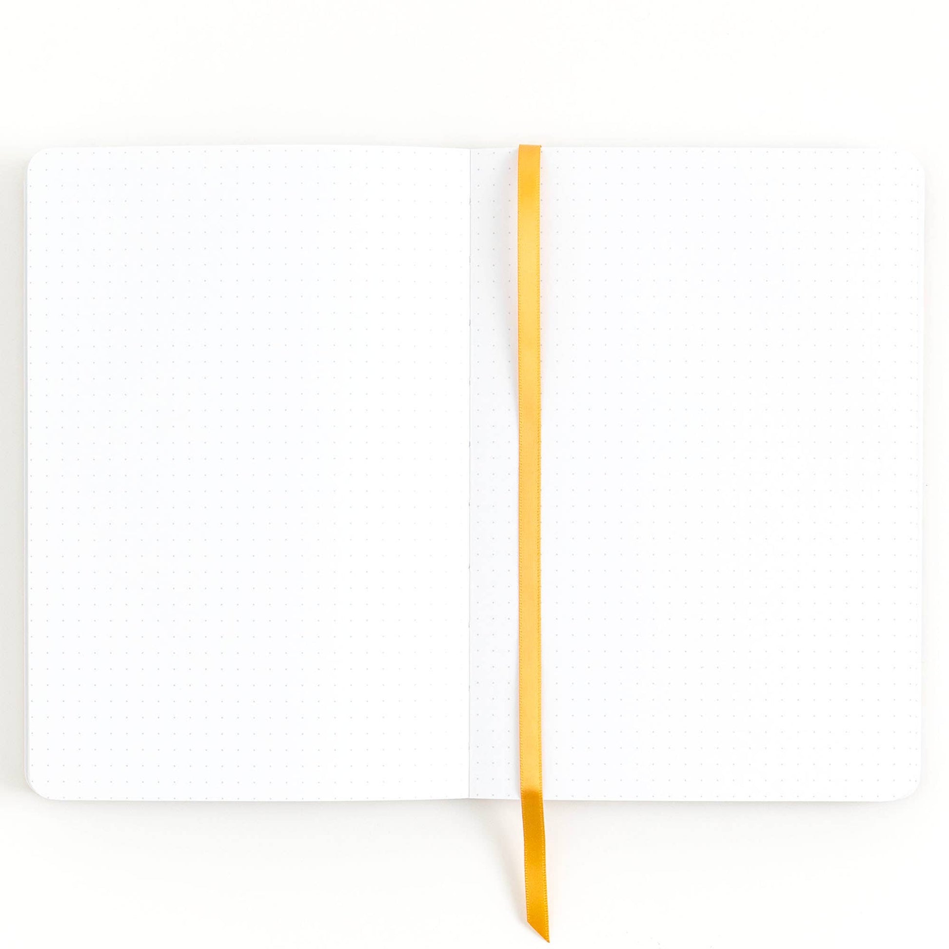 This Montauk Dot Grid Journal boasts a laminated hardcover and exposed lay flat binding, providing both durability and functionality. The elegant gold elastic closure and ribbon bookmark add a touch of sophistication. With 160 dot grid pages and 160 gsm paper, this journal is perfect for jotting down notes, sketches, or plans. Importantly, it is also compact, measuring at 5.5" x 8" x 7/8" thick. A must-have for anyone seeking a high-quality, imported journal.
