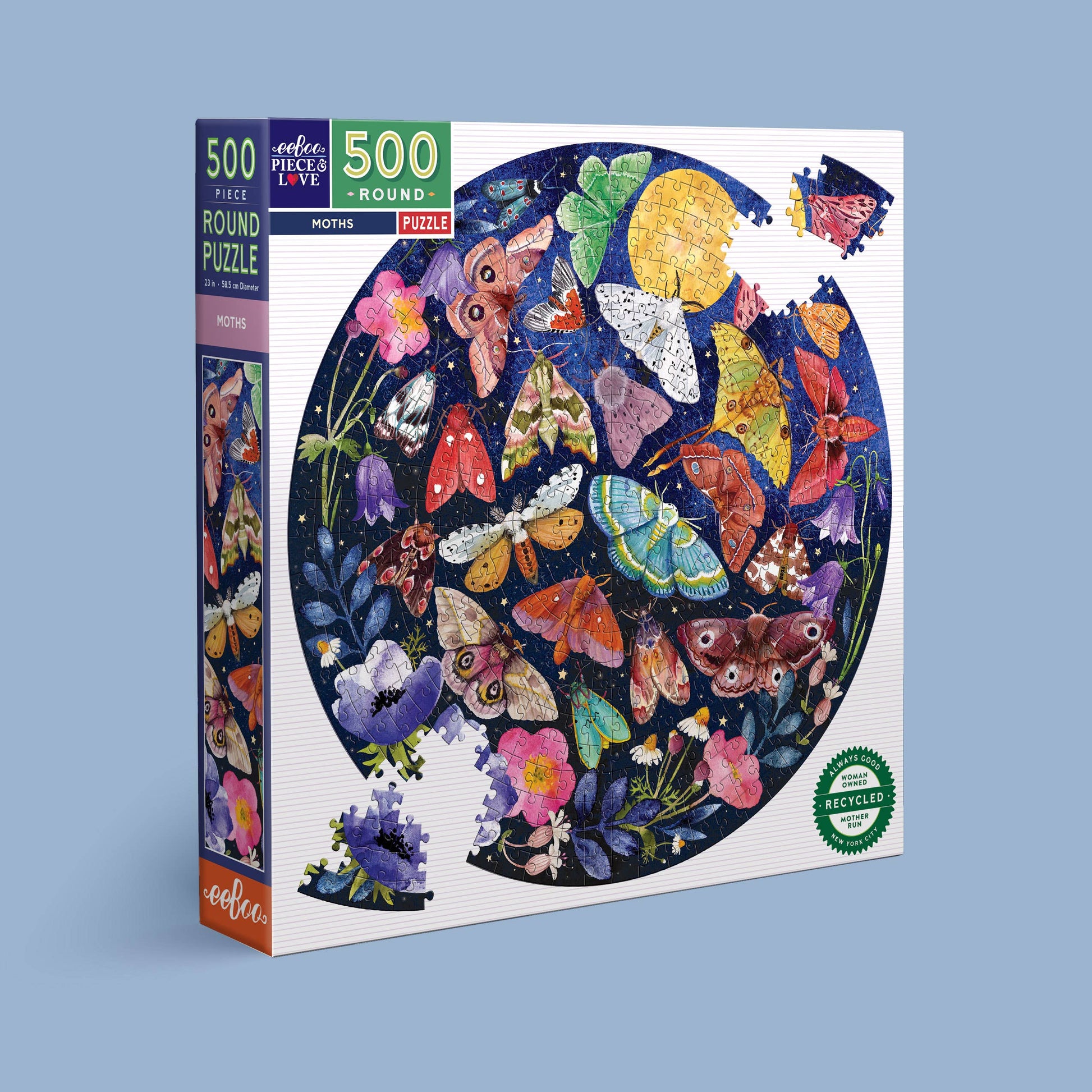 Eeboo Jigsaw Puzzle (500 Piece Round; Moths)