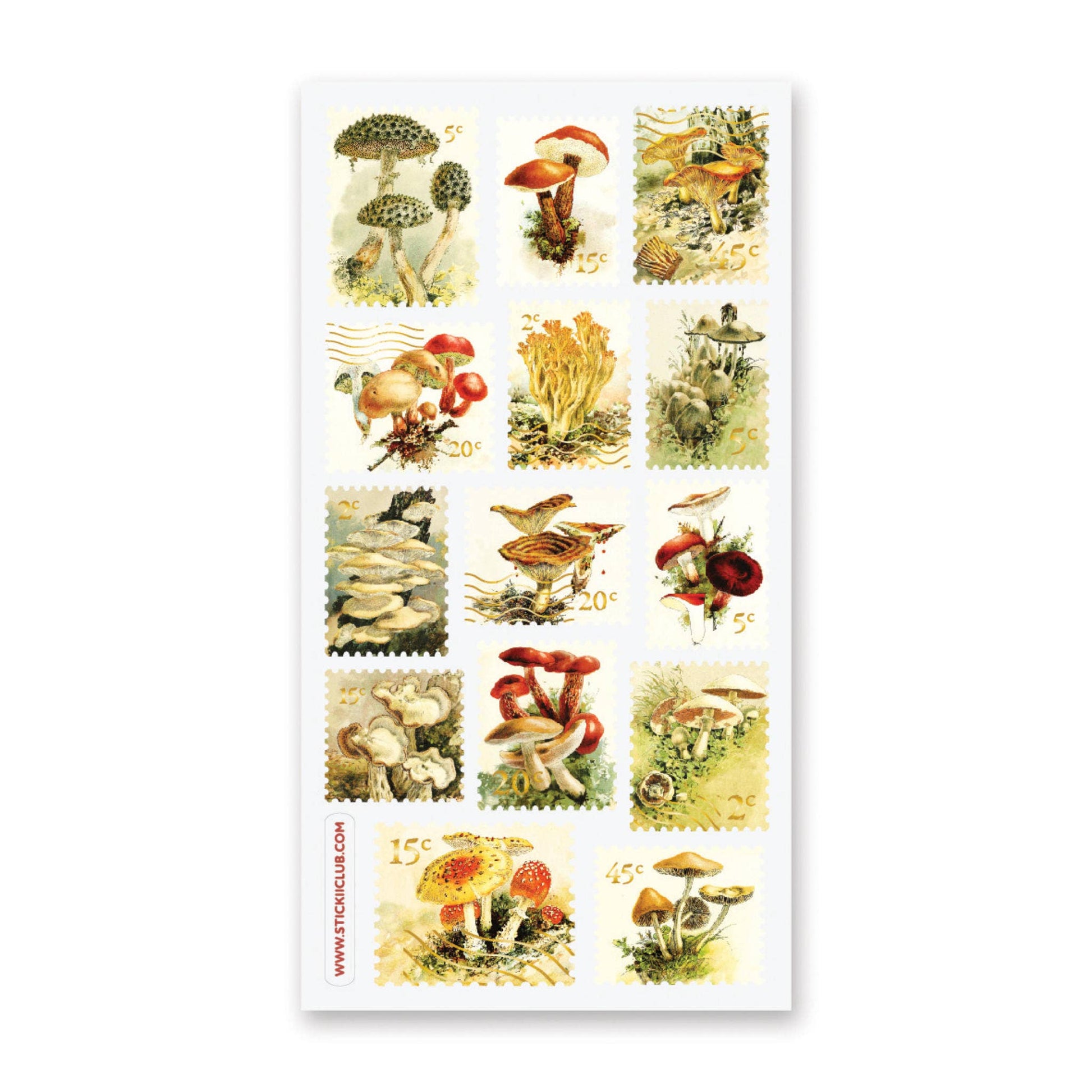 These vintage mushroom stamps are perfect to pair with snail mail and handwritten letters! Top Coating: Gold foil Adhesive Layer: PVC (plastic) Backing Layer: Clear PET 6.69" x 3.54". Weight - 0.03lbs. 1 sheet included