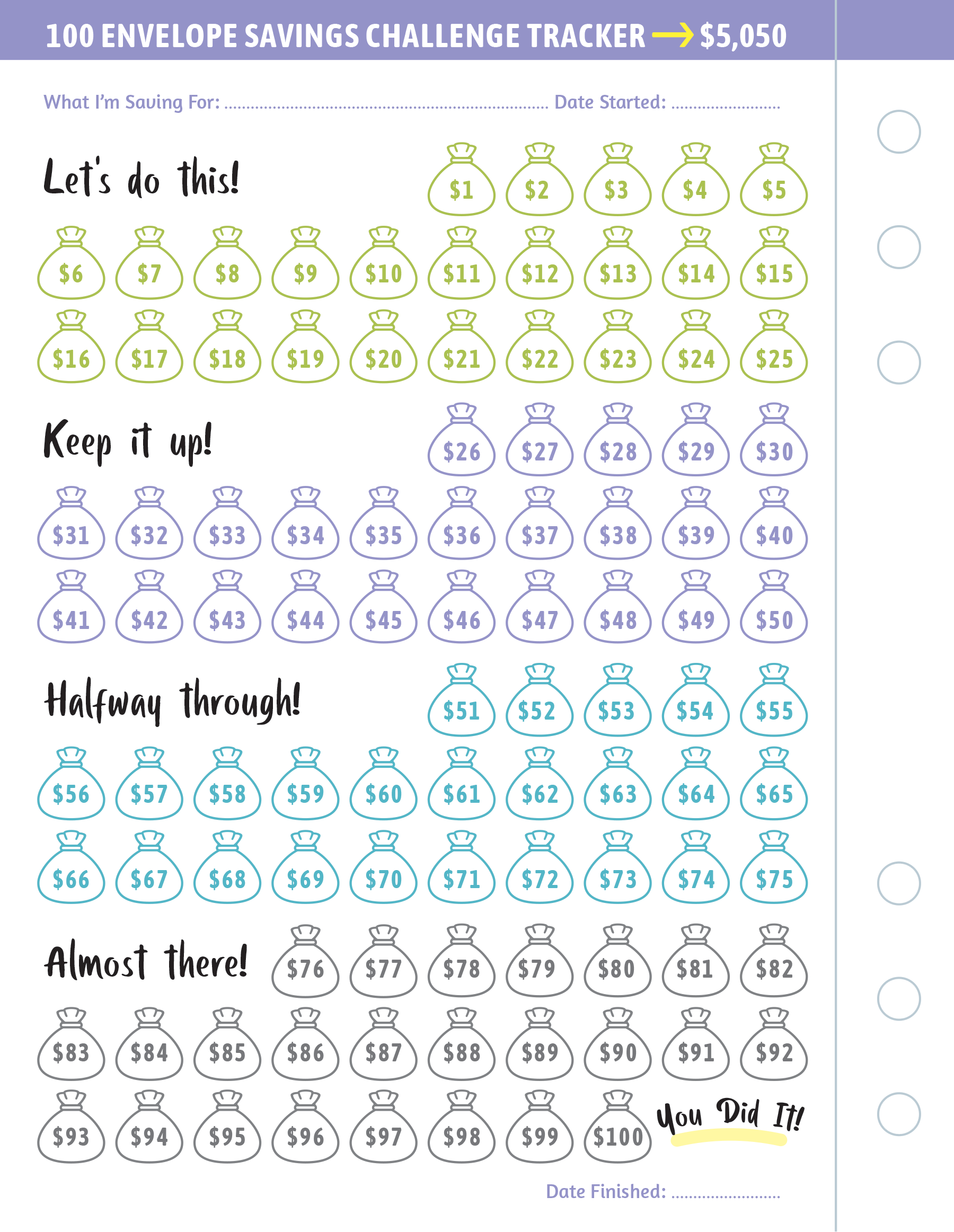 My 100 Envelope Savings Challenge Binder