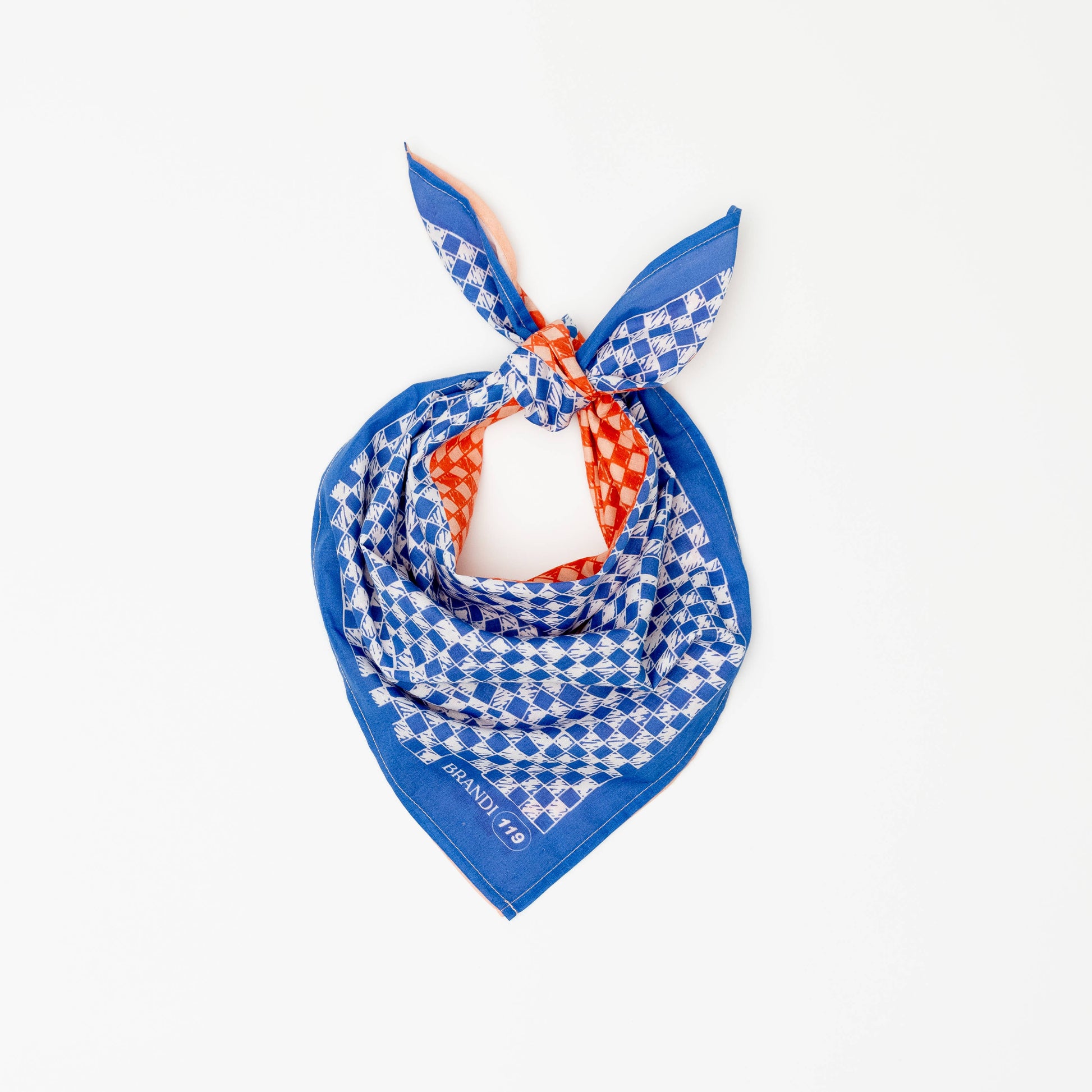 Introducing the Brandi Bandana, the perfect addition to your rebellious side. Whether you're jumping in a lake or meeting new people, this certified Cool Girl has got you covered. Made with premium cotton, this 22x22 inch bandana is designed in the U.S. and hand screen-printed in India. With endless possibilities, use it as a handkerchief on hikes, as a hair or clothing accessory, or tie it around your pup's neck for some extra charm. Don't miss out on the fun with Brandi!