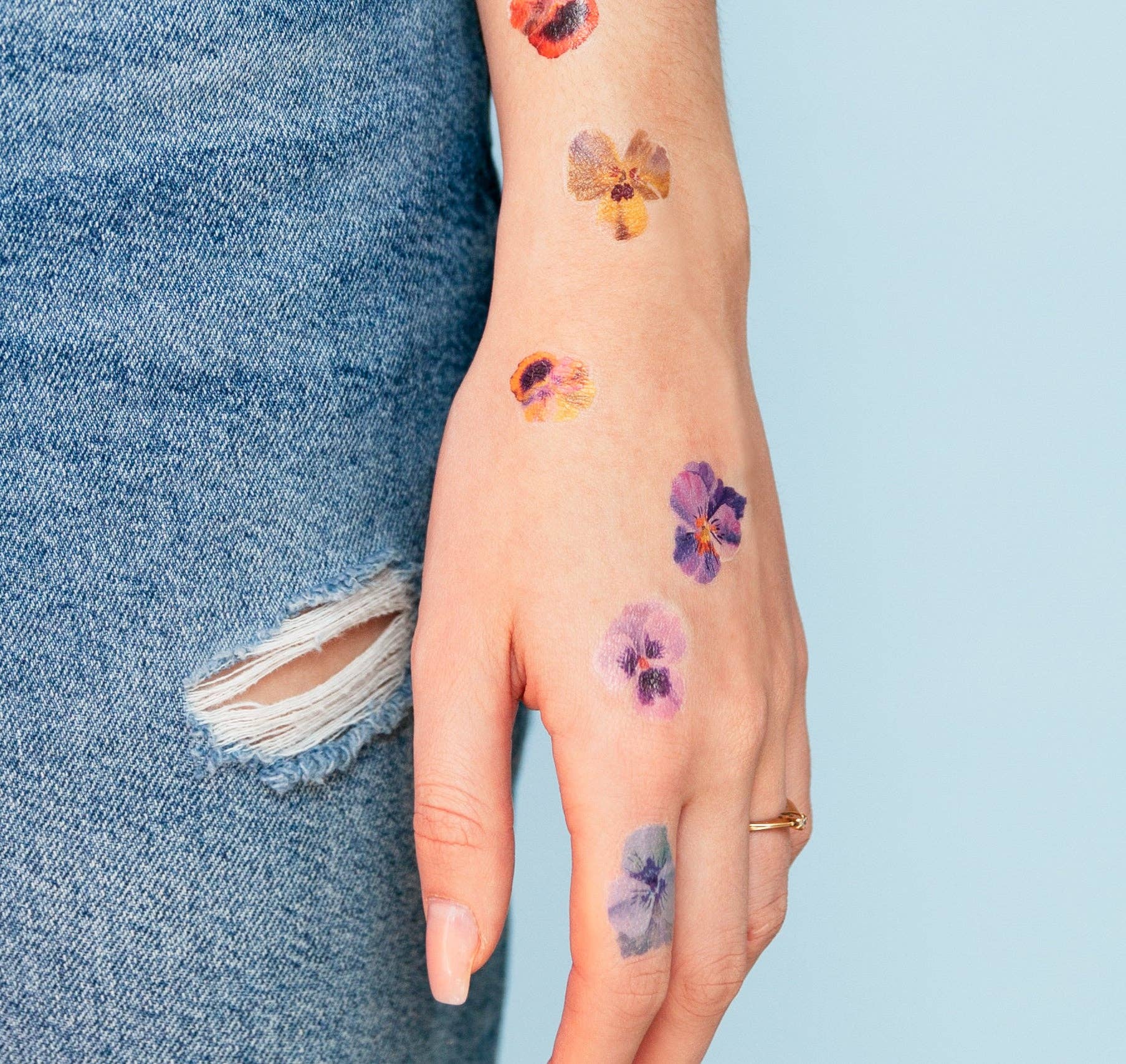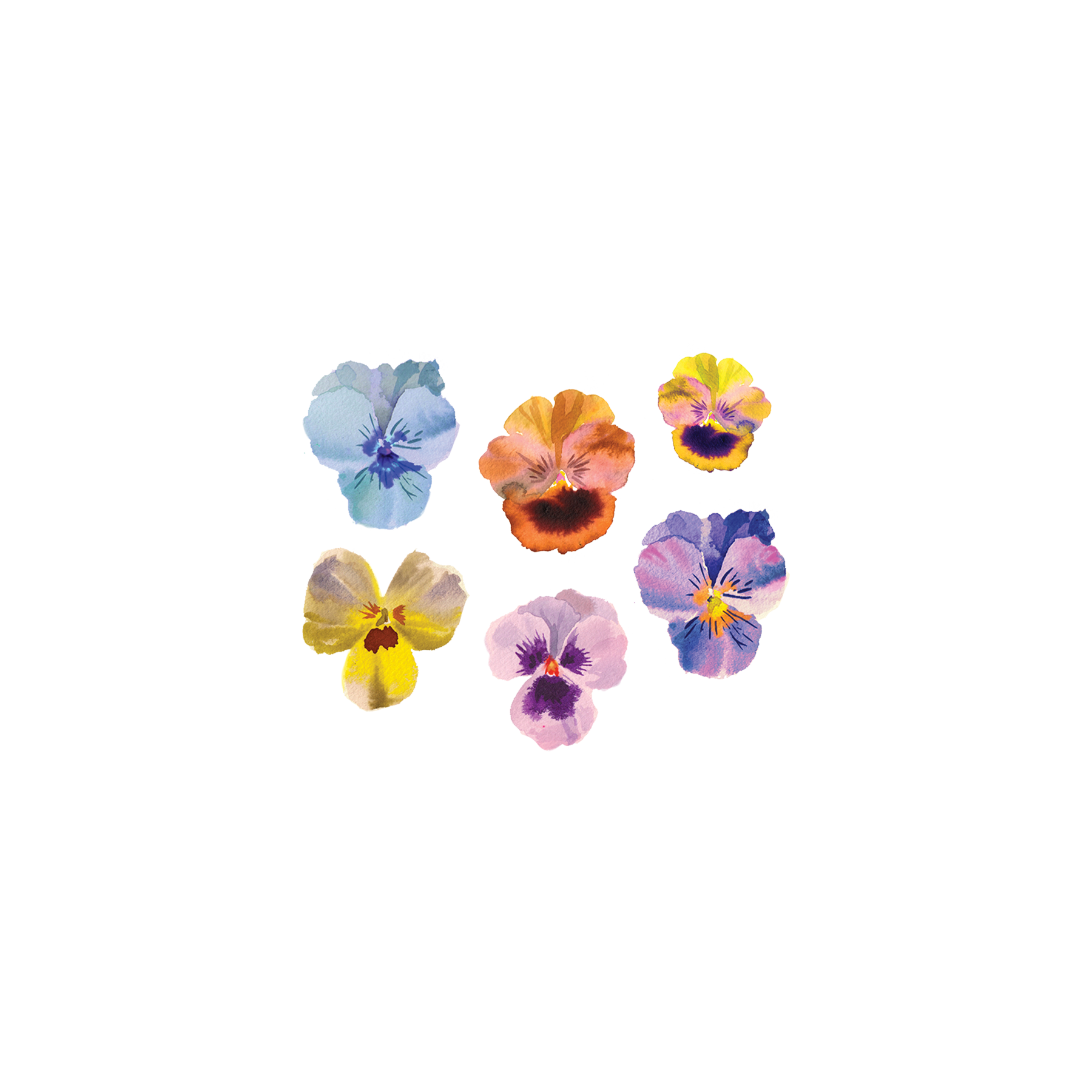 A collection of temporary tattoo pansies from artist Helen Dealtry. These are non-toxic, made in the USA, and ready to be applied. Includes two sheets of the design.