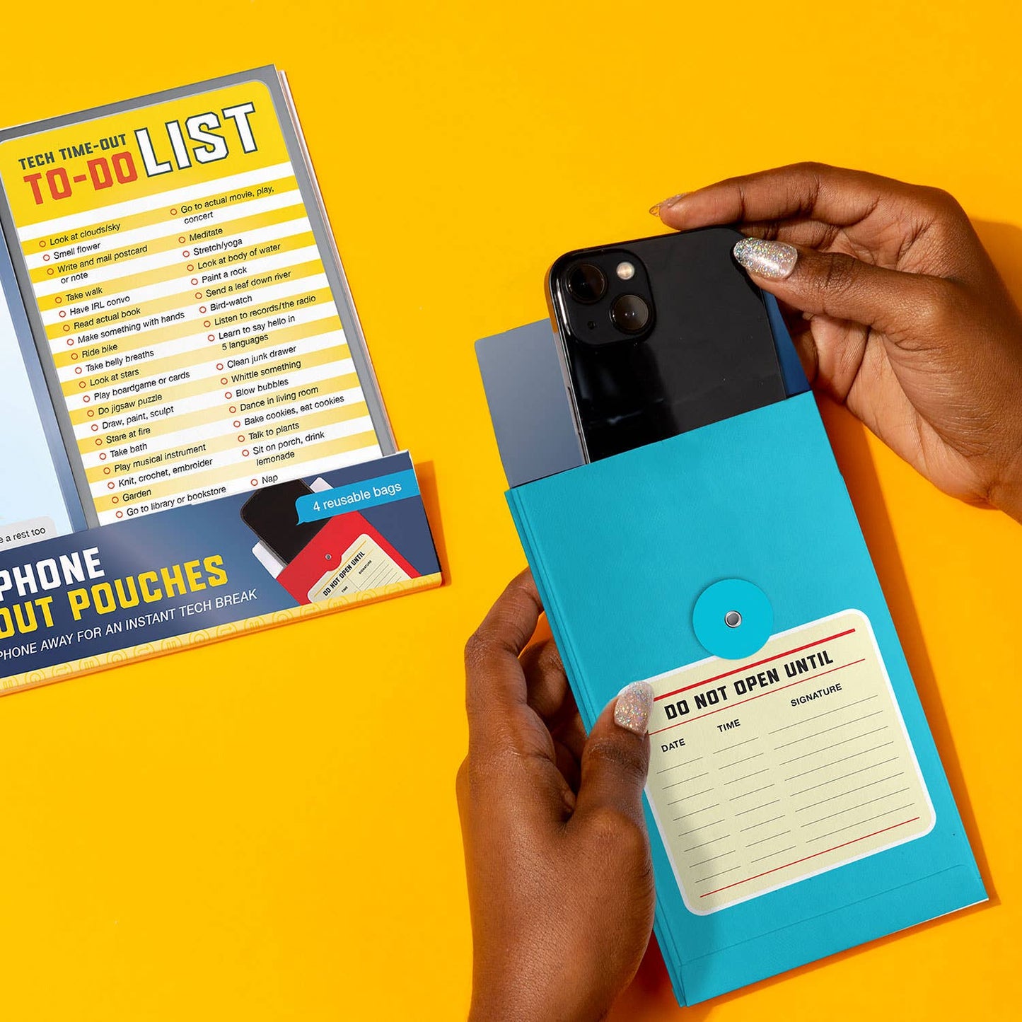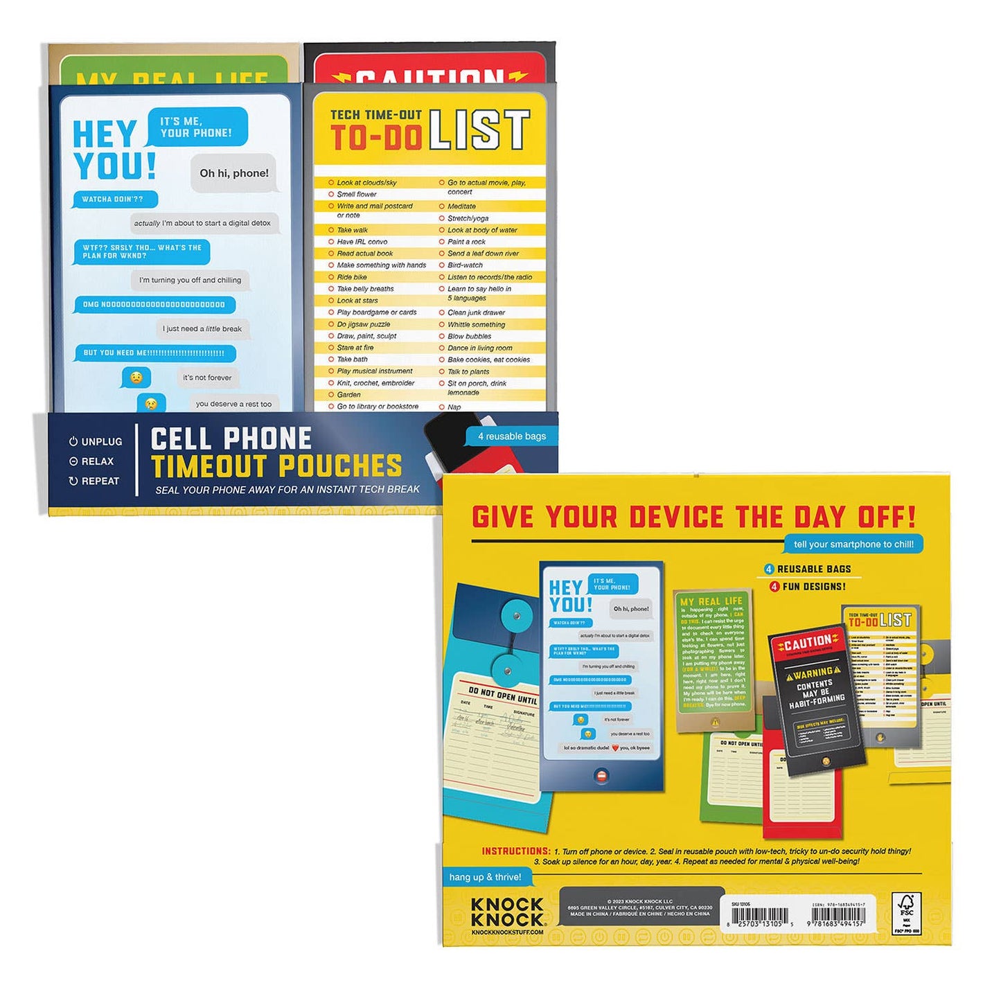 Hang up and thrive! These sturdy, reusable cell phone pouches make it easier to unplug and give yourself a digital detox—and more fun. Just decide how long you want to detox, then turn off your phone, seal it in a pouch, and soak up the peace & quiet! These pouches even have ideas for all the screen-free things you can do during your detox, and funny words of encouragement.
