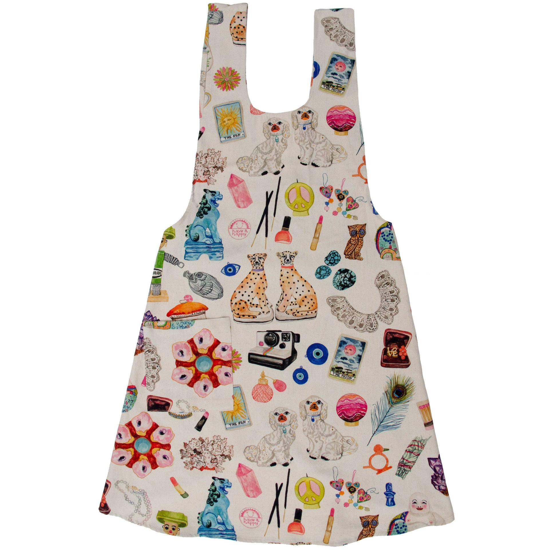 Inspired by the vintage 70’s smock, these cross back, pullover aprons are bestsellers and a customer favorite. Perfect in both the kitchen and garden, the full coverage and side pocket provide comfortable protection from cooking and planting alike. Colorful and conversational, they feature Betsy’s original watercolor designs. Small Batch & Ethically Made Cross Back Pinafore Style Inspired by 70's and Japanese design Printed Digitally with BETSY OLMSTED Hand Painted Designs.