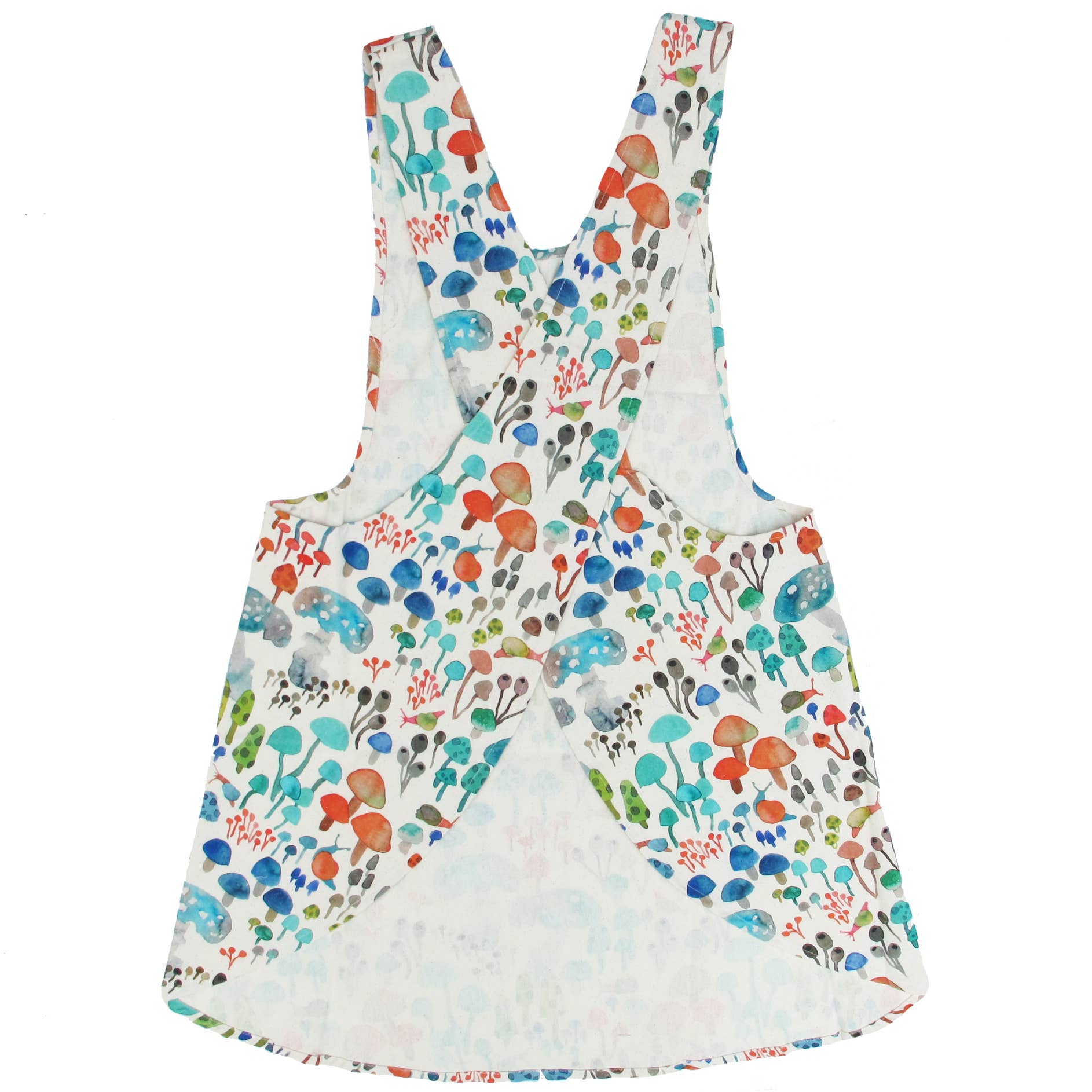 Inspired by the vintage 70’s smock, these cross back, pullover aprons are bestsellers and a customer favorite. Perfect in both the kitchen and garden, the full coverage and side pocket provide comfortable protection from cooking and planting alike. Colorful and conversational, they feature Betsy’s original watercolor designs. Small Batch & Ethically Made Cross Back Pinafore Style Inspired by 70's and Japanese design Printed Digitally with BETSY OLMSTED Hand Painted Designs.
