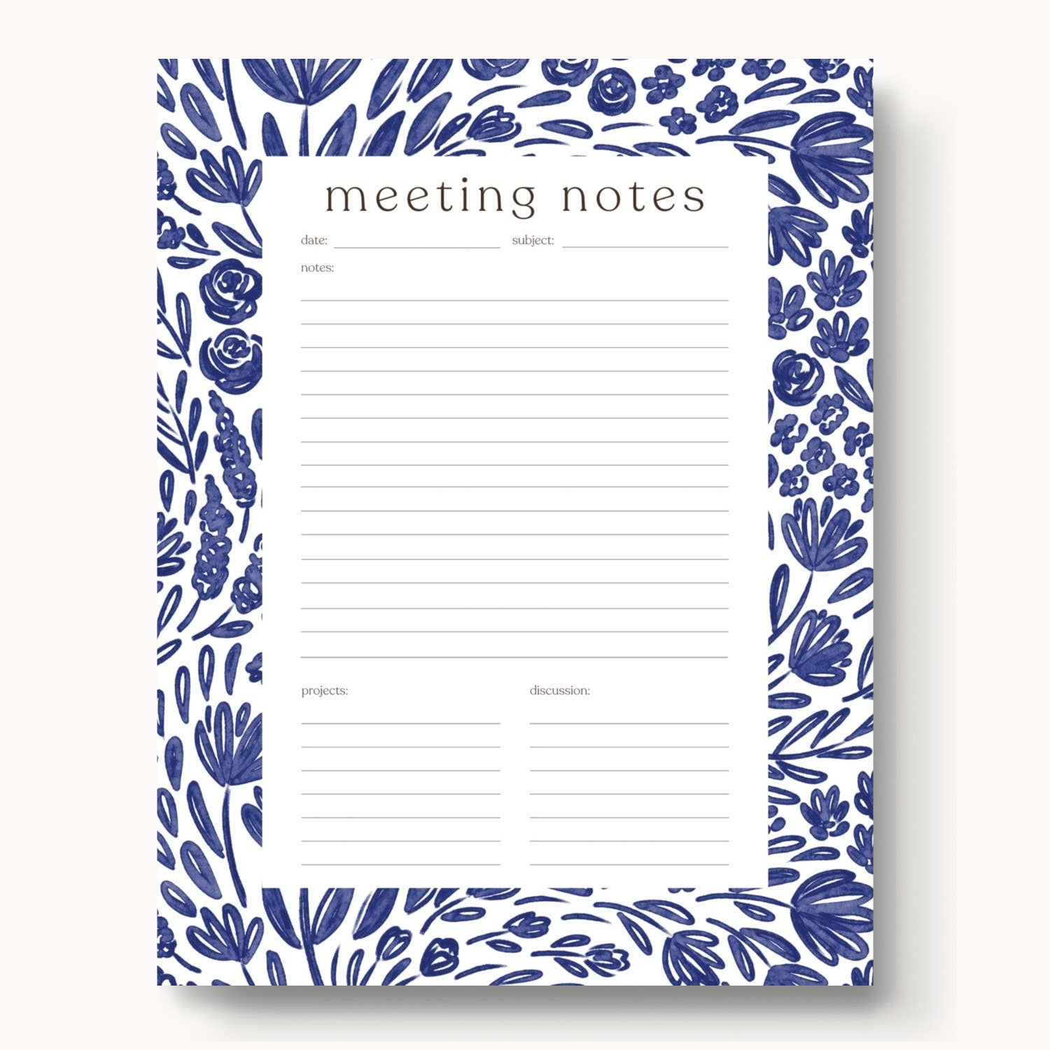Notepad; Meeting Notes (Blue Porcelain Floral)