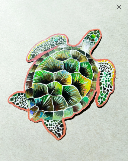 Vinyl Sticker; Sea Turtle Sticker with Holographic Accents