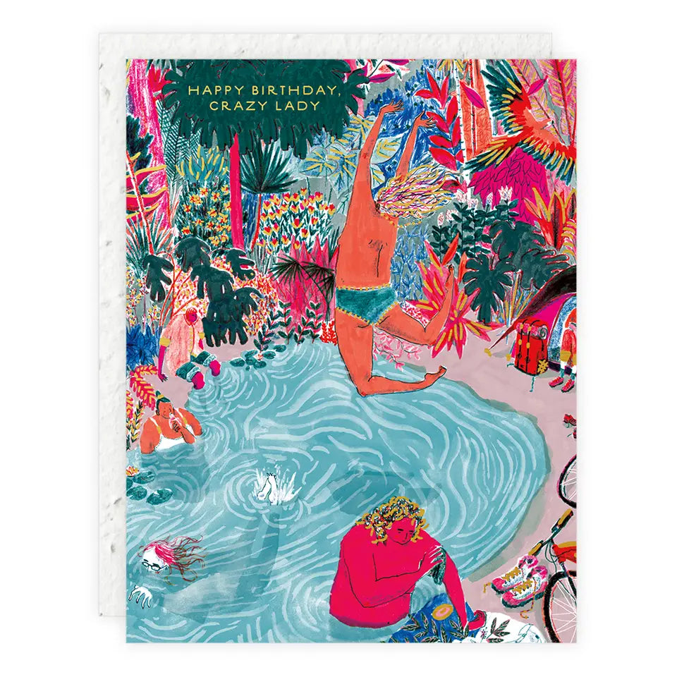 Seedlings Birthday Card; Crazy Lady (Plantable Envelope)