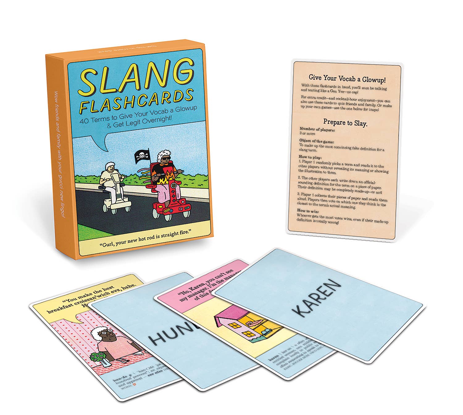 Do you think “tea” is a hot drink and “stan” is someone’s grandpa? Bruh, your vocab’s about to get a glowup! With humor and classic educational style, these flashcards will help you learn the tricky lingo of today’s youth. You’ll never sound basic again.