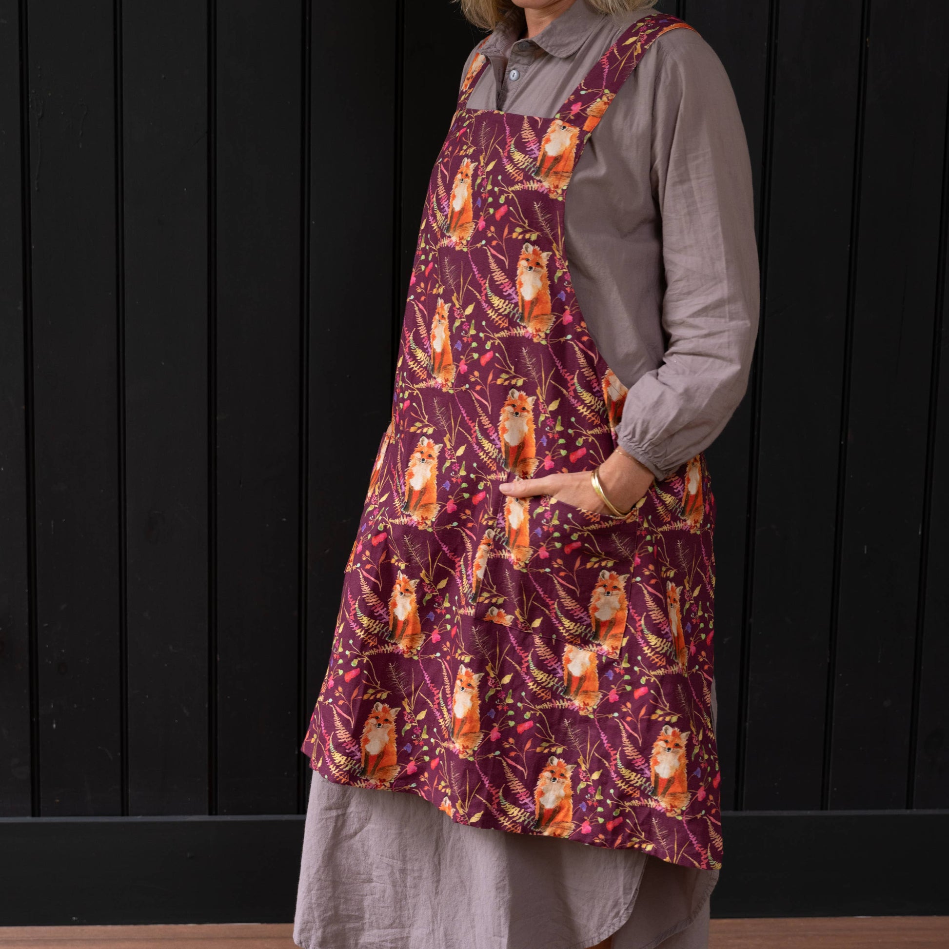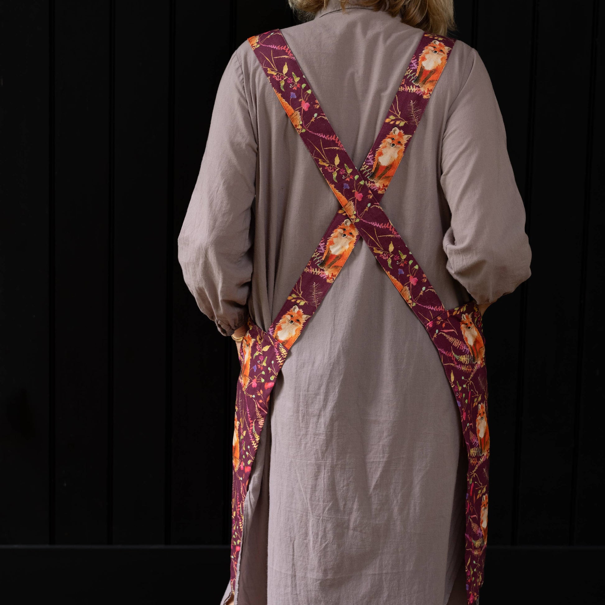 BETSY OLMSTED has reinvented the classic butcher's apron with cross back straps. Their smock apron is generously sized to fit a wide range of bodies. Perfect in both the kitchen and garden, the full coverage and side pocket provide comfortable protection from cooking, planting and crafting alike. Colorful and conversational, they feature Betsy’s original watercolor designs.