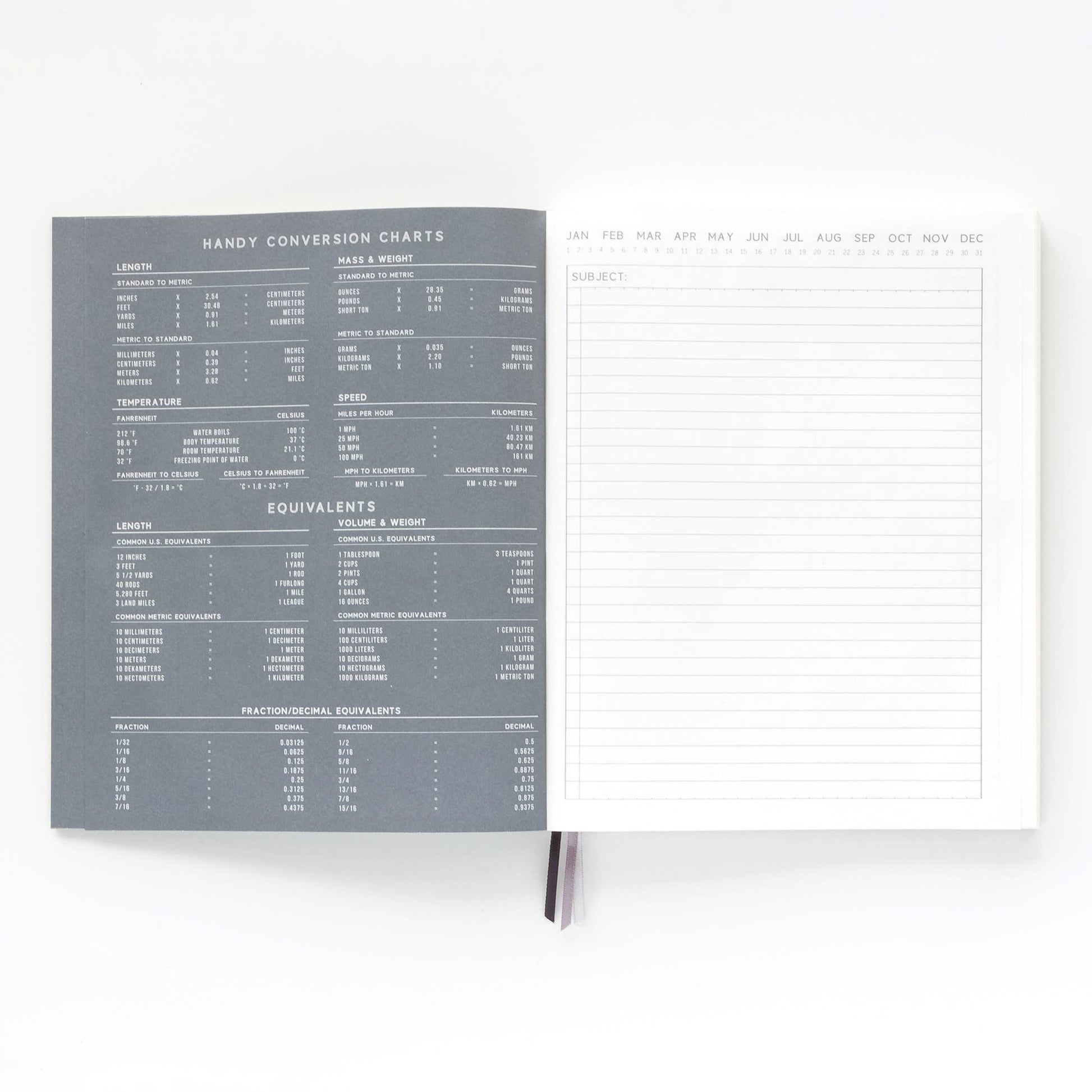 - 192 Lined Pages with Day & Month Headers & Subject Line