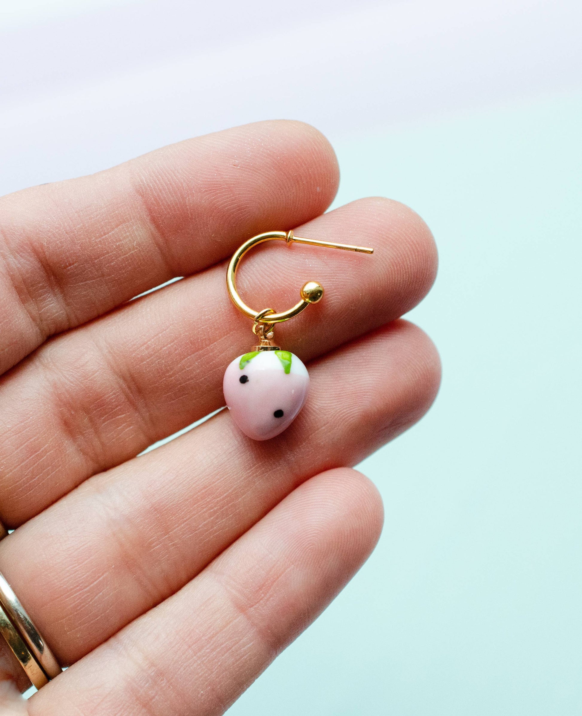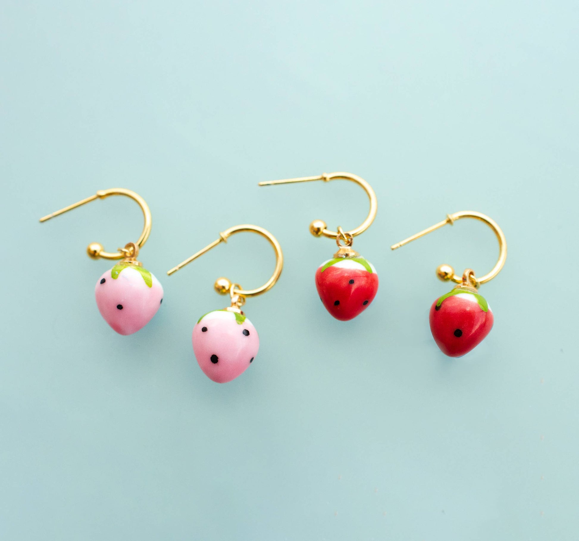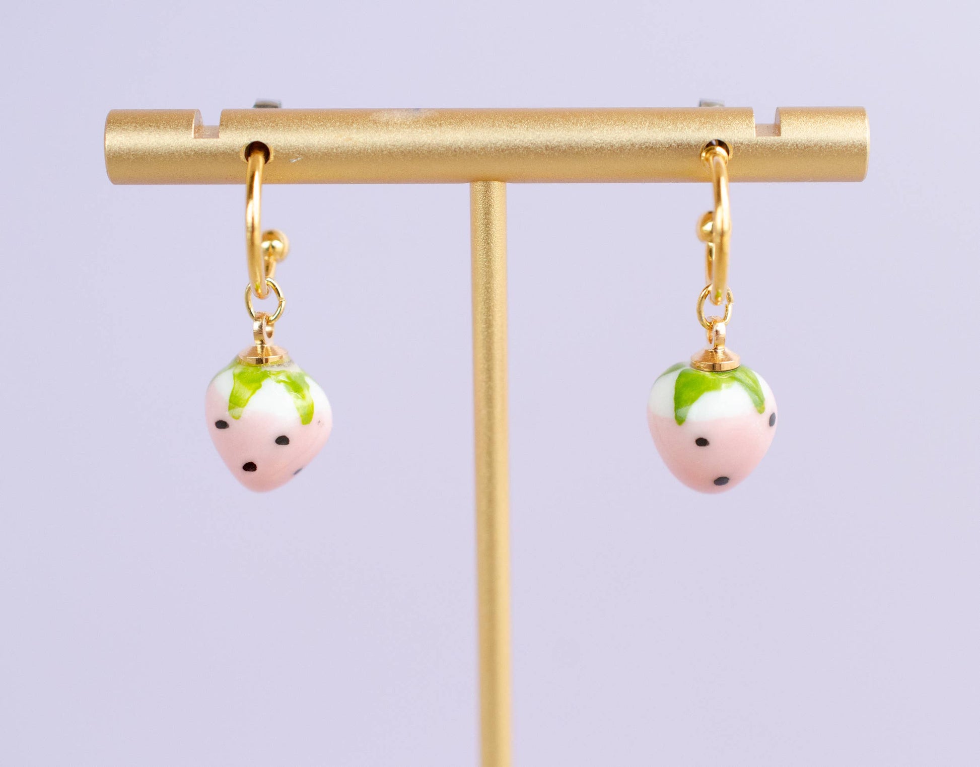 Earrings; Strawberry Hoop: Pink (Gold) By Jill Makes