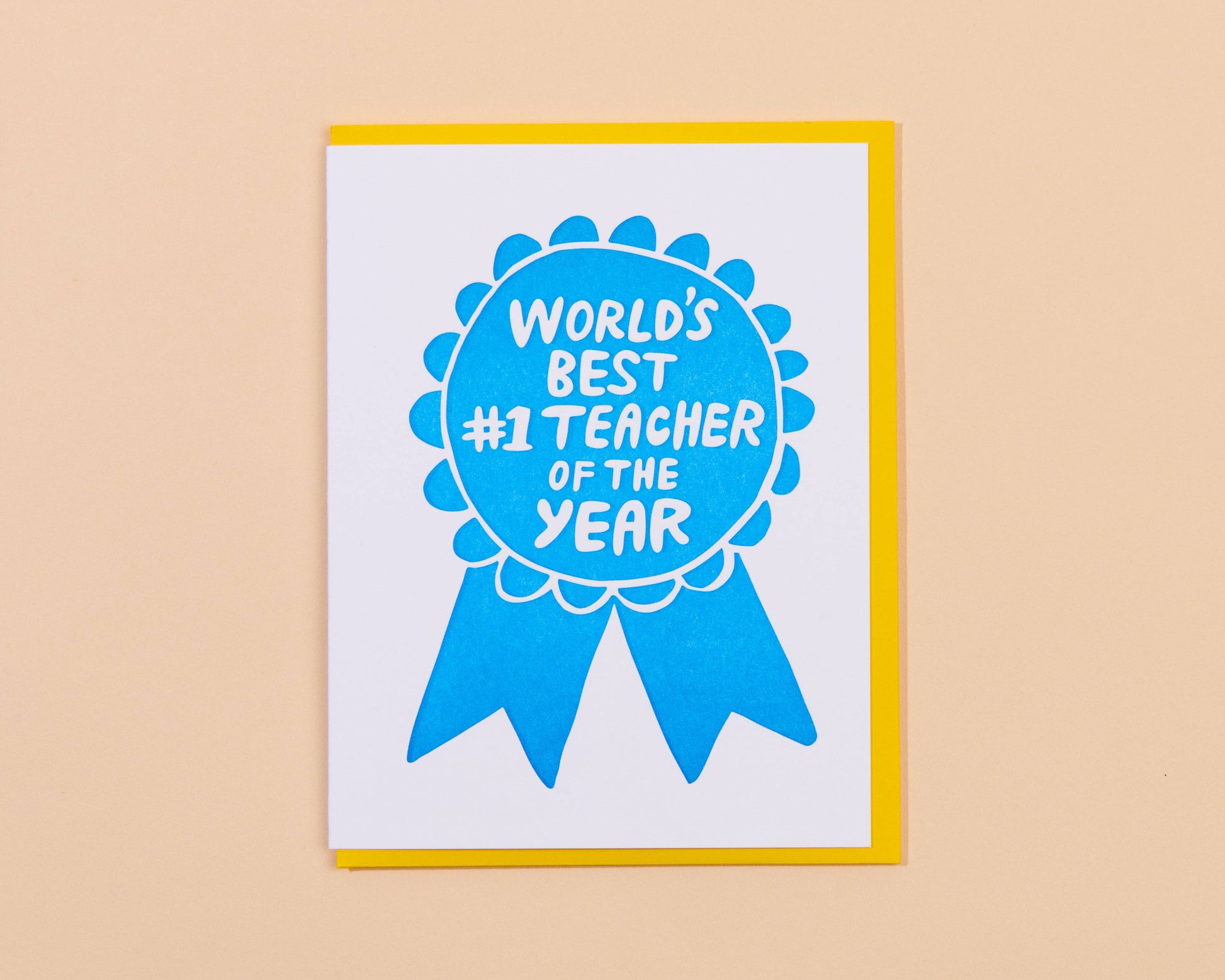 Celebrate a teacher from every angle with this "World’s best #1 teacher of the year" card!