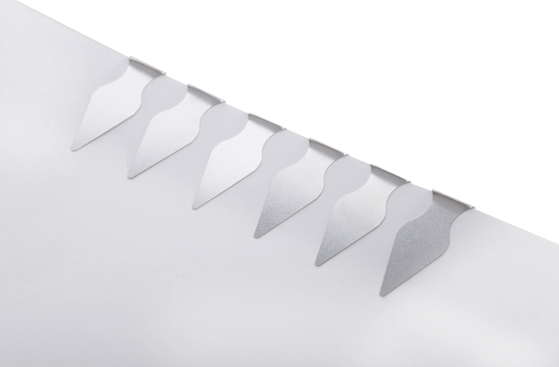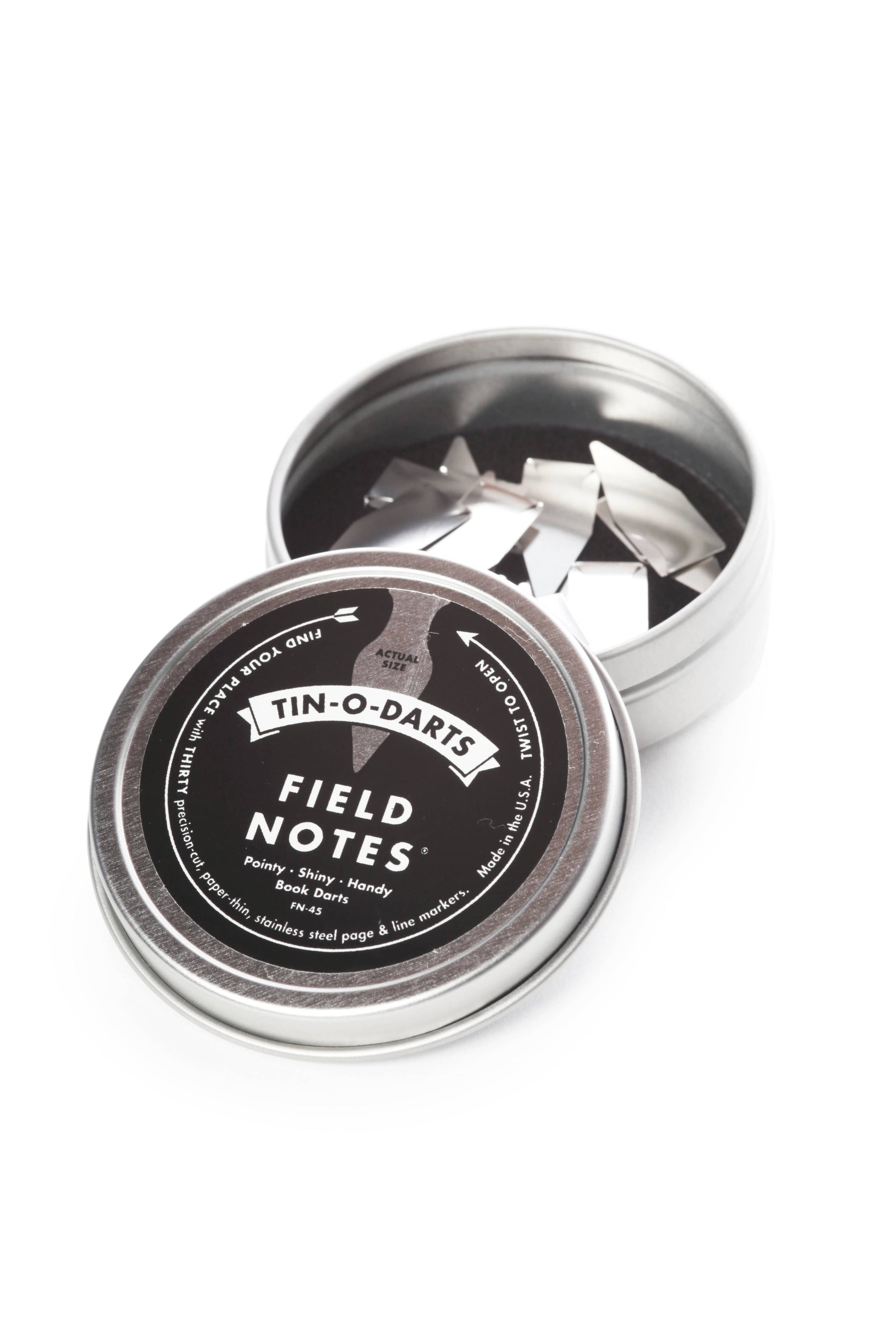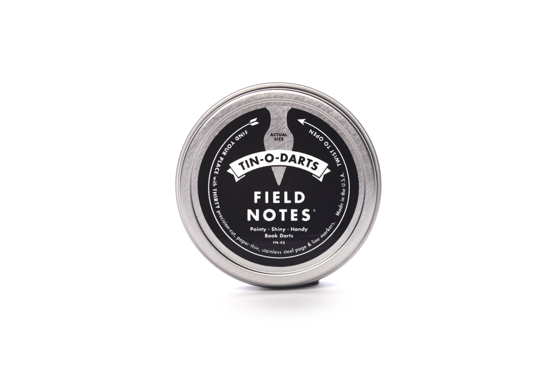 The FN-45 “Tin-O-Darts” is a seamless 2-1/2” pressed tin containing 30 gleaming stainless-steel Book Darts. They’re paper-thin and unobtrusive, but easy to find. They cling tightly to the page, but are easy to apply and remove without causing damage. You’ll find all sorts of uses for them.