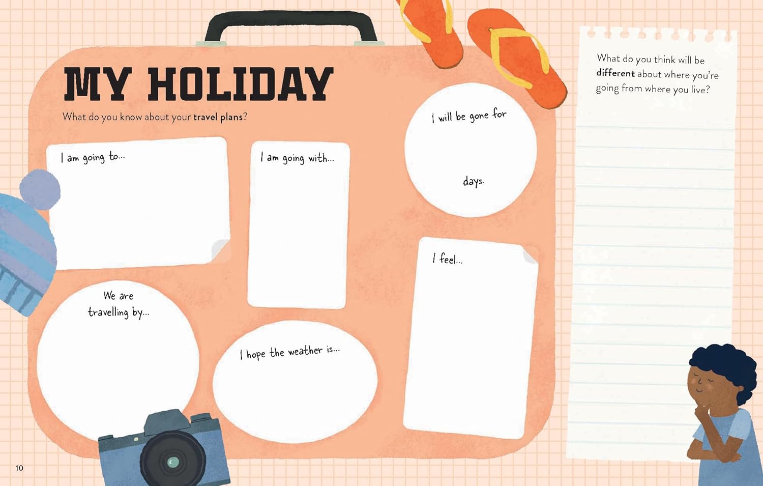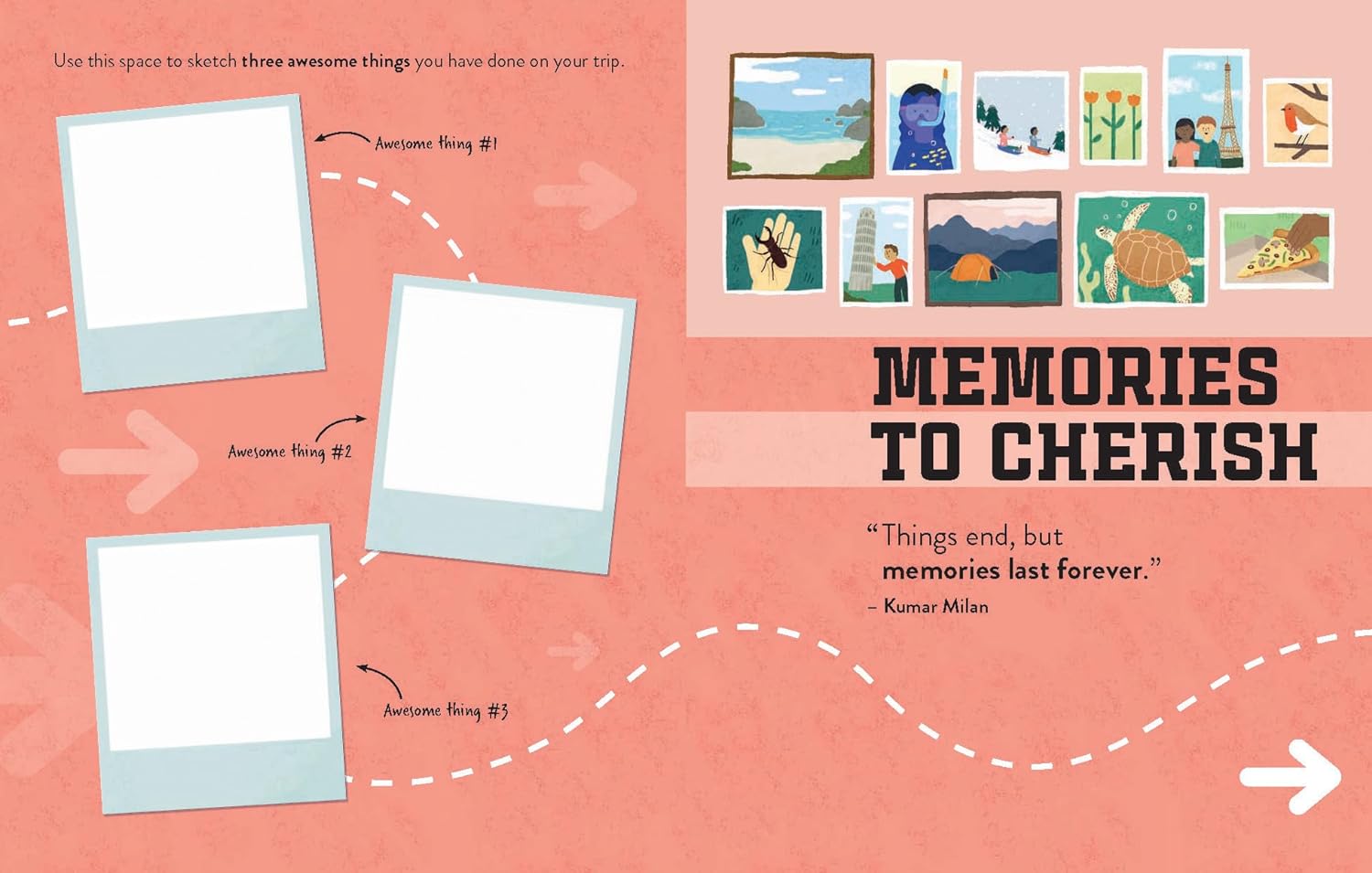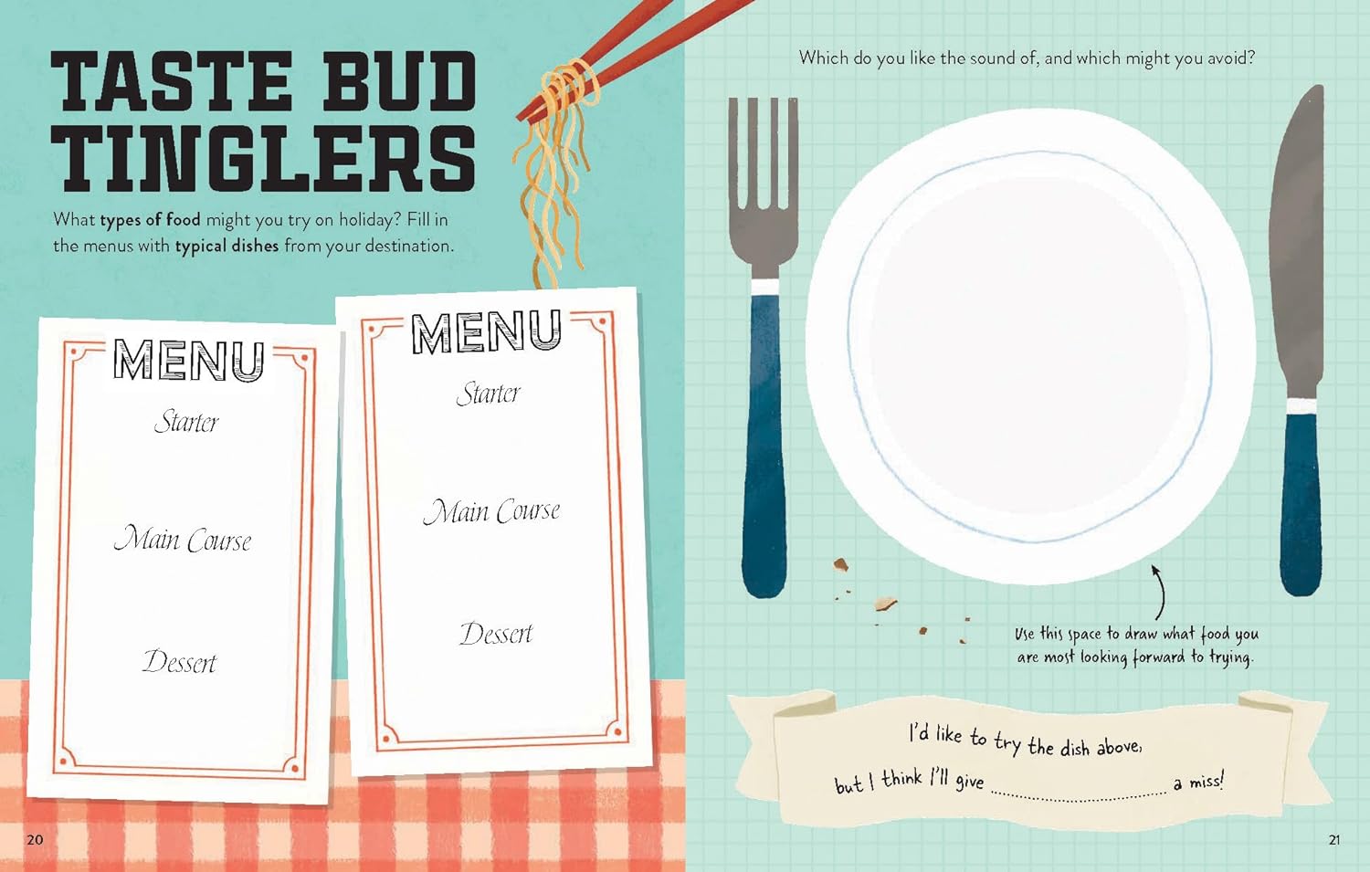 - A super memento to remind kids - and grown ups – of the adventures they share togetherIncludes: create a postcard of your favorite vacation destination; make a playlist of the songs you've heard during your holiday; fill in a holiday menu; draw pictures of your travel buddies; sketch the view from your room; write about your favourite experience so far; create a special souvenir of your trip; draw all the people you've met during your getaway – and more