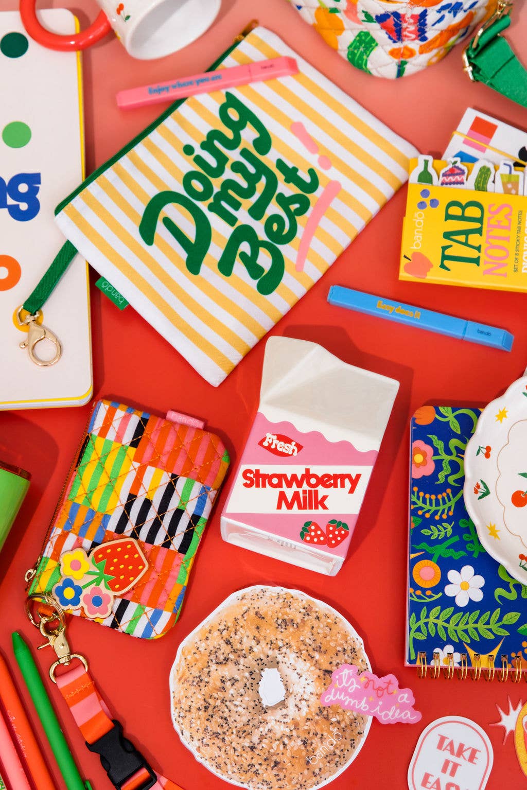 Gulp. We made a new ceramic vase. It's not quite milk and it's not quite a strawberry—it's strawberry milk! Add some flowers or pens and pencils as you please.