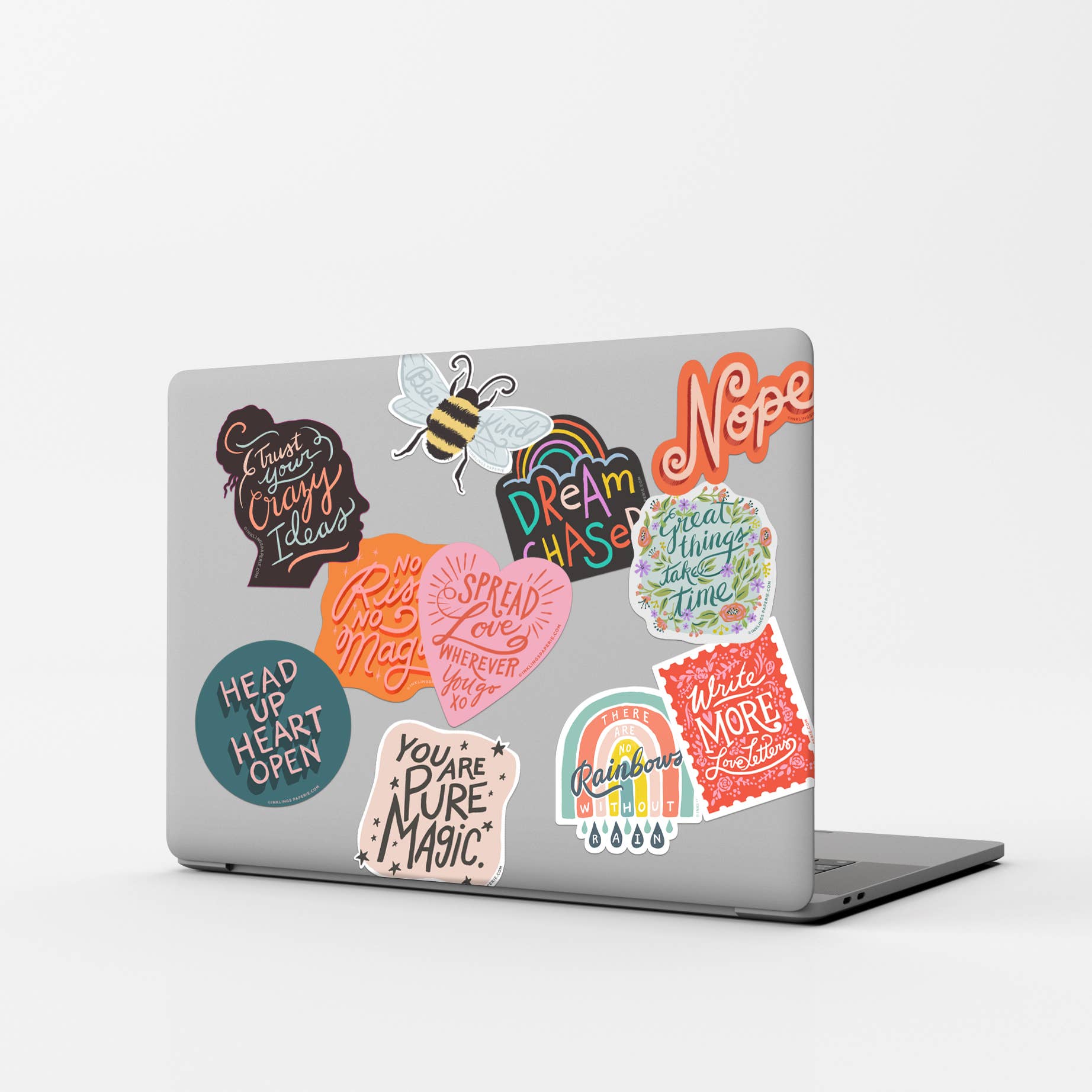Hand-lettered and illustrated in-house with so much love. These premium vinyl stickers have a luxe matte finish and are dishwasher-safe, weatherproof and tear-resistant! Use them on water bottles, laptops, yoga mats and more. This adhesive is permanent, so stick it where you'll love it.
