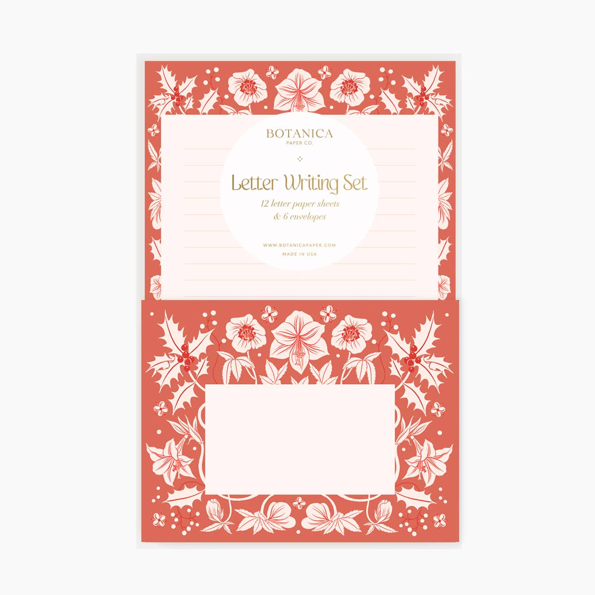 Letter Writing Set; Winter Botanicals (Red) By Botanica Paper Co. (12 Letters + 6 Envelopes)